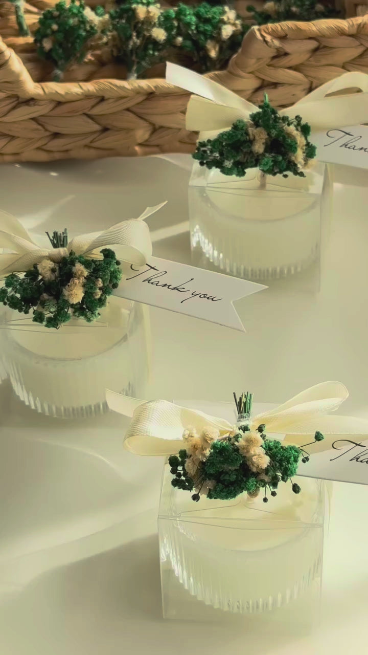 Recipient de sticlă și buchețel | Lumânări parfumate | Mărturii